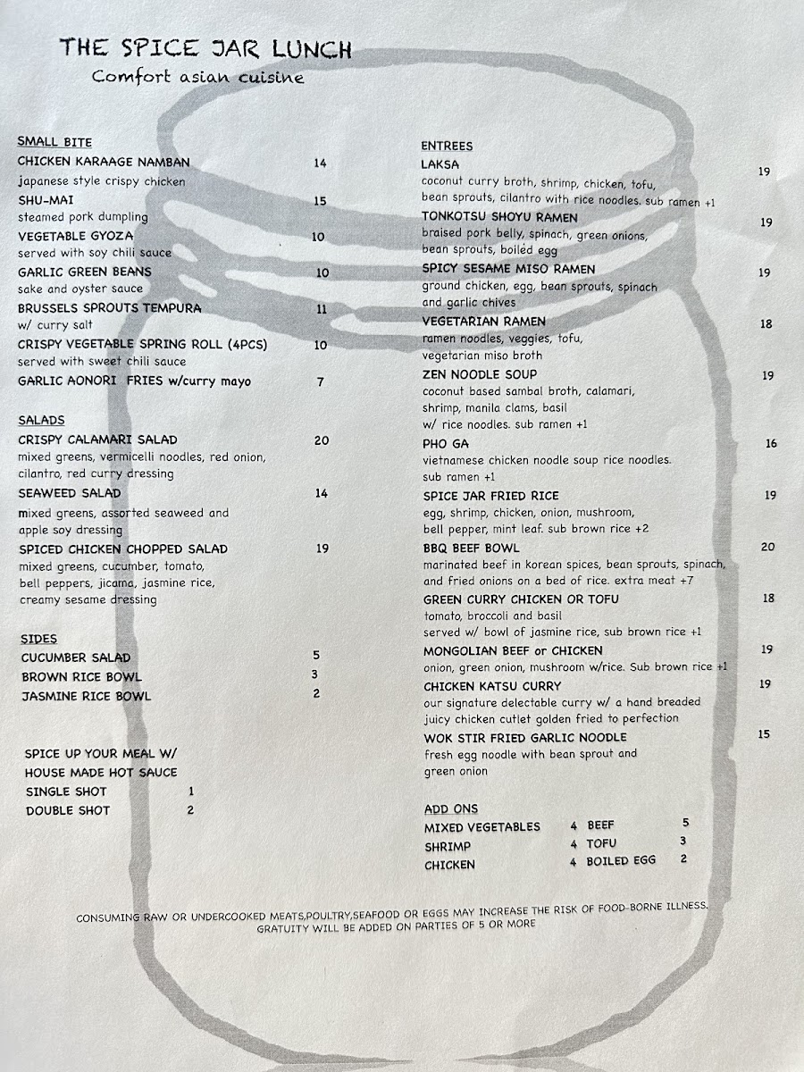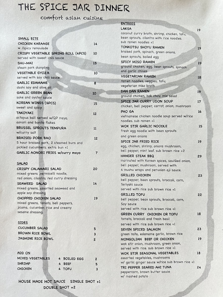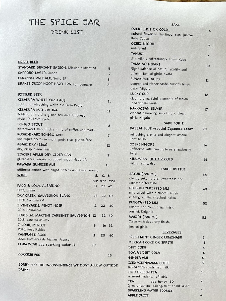 At The Spice Jar, you’ll find a vibrant mix of flavors that bring together the best of bold, aromatic spices and fresh ingredients. Located in the heart of San Francisco, this cozy spot offers a menu packed with dishes that are as diverse as they are delicious. From sizzling appetizers to hearty entrees, every item is crafted to transport your taste buds on a journey of savory and spicy delights. Whether you’re in the mood for something familiar or feeling adventurous, The Spice Jar Menu has something for everyone. Enjoy dishes that range from rich curries to flavorful stews, and don’t forget to try their signature spice blends that are sure to leave you coming back for more.